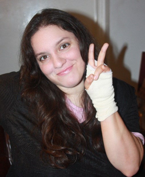 I no longer look like a boxer but a street fighter with wrapped knuckles. *puts up her dukes…after taking a minute to curl them into fists*